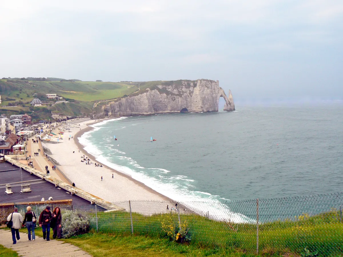 Étretat är känt för sina spektakulära klippor som stupar rakt ner i havet. Här kan du vandra längs klippkanten, ta båtturer eller bara slå dig ner på stranden med en bok. De vita klipporna, inklusive den berömda ”elefantklippan”, har inspirerat både författare och konstnärer.
